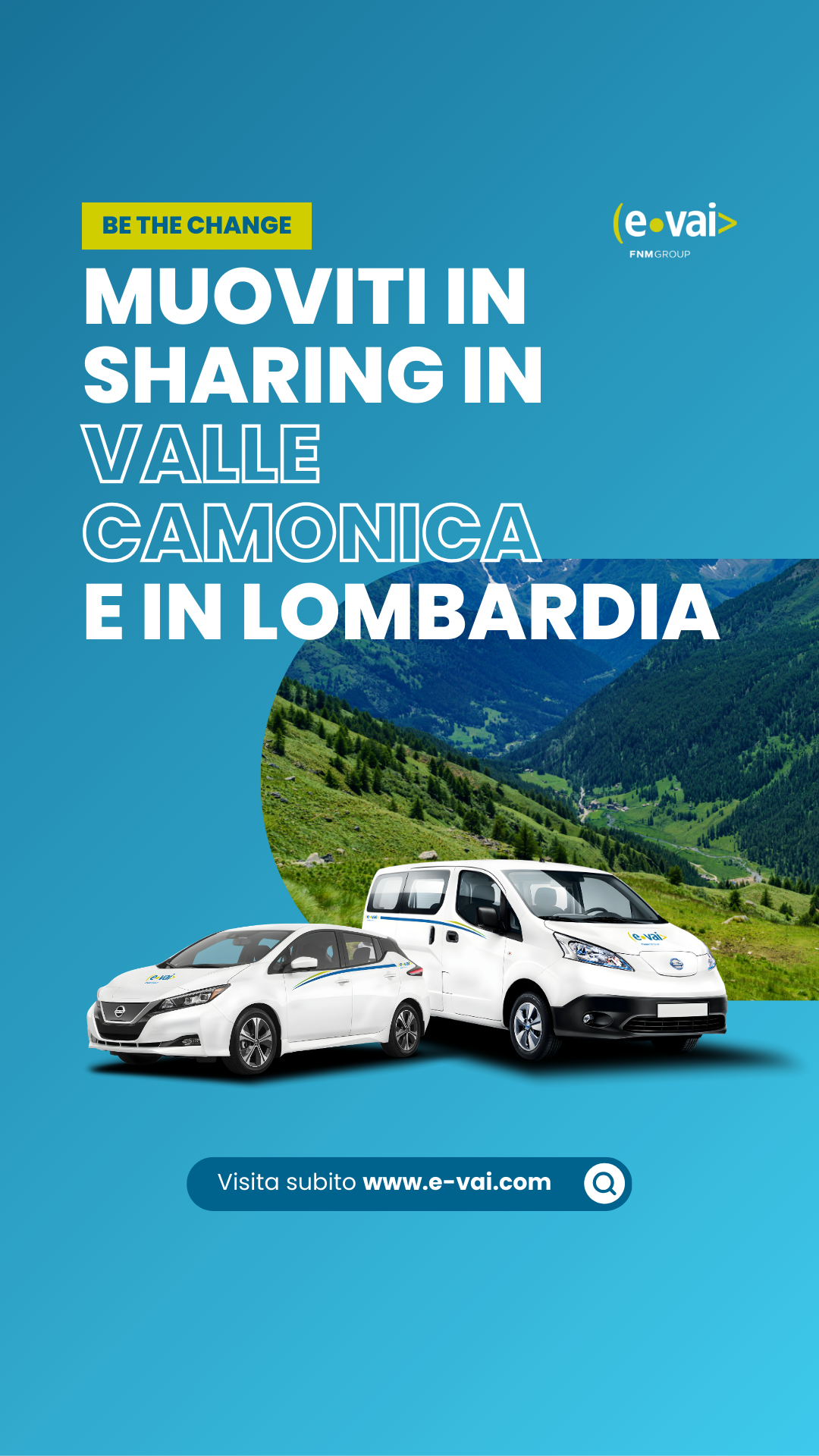 E-VAI car sharing è l'operatore che fornisce servizio co auto a batteria elettrica.